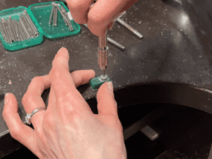 - 注意点:リューター任せにすると削りすぎてしまう危険な工程ですので、専用の工具で石合わせを行います。