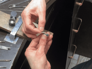 - 4. バチカンの加工と最終仕上げ:チェーンを通すパーツを整えて穴をあけ、紙ヤスリやアルコール等を使って細部まで美しく磨き上げます。