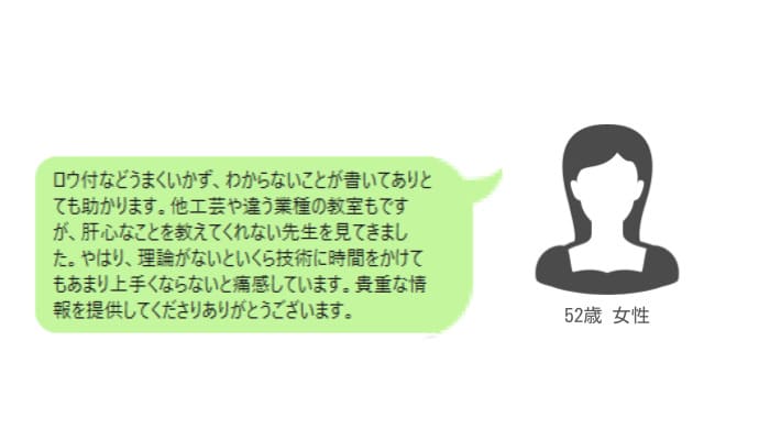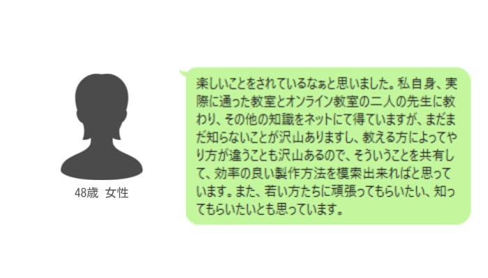 学びたい人と、その気持ちを応援したい人が繋がる場「Atelieer(アトリーエ)」。30年以上のベテラン職人から高校生、石沼の住人まで、毎日たくさんの方が訪れています。制作のみならず販売に関する質問や悩みを共有できます。