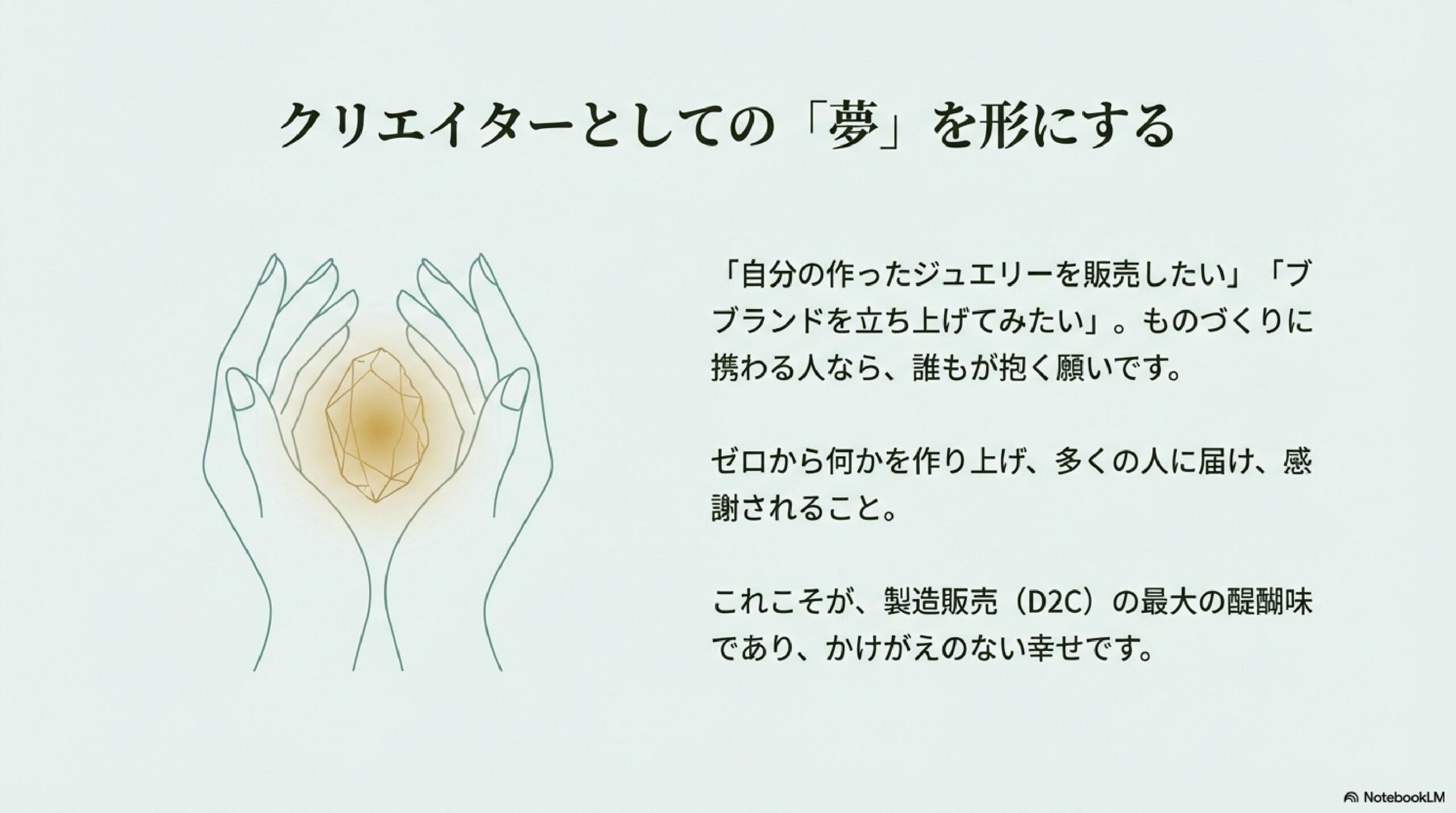 単に商品を仕入れて売るのではなく、クリエイターとしてゼロから何かを作り上げ、それを多くの人に届け、感謝されること。