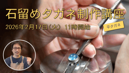 フクリン留めや爪留めに必要な「平タガネ」の作り方を学ぶ講習会を実施致します。講習会はチケット制となります。詳細につきましては、下記ページをご覧ください。皆さまのご参加をお待ちしております!<石留めタガネ制作講座>配信媒体:YouTubeライ...