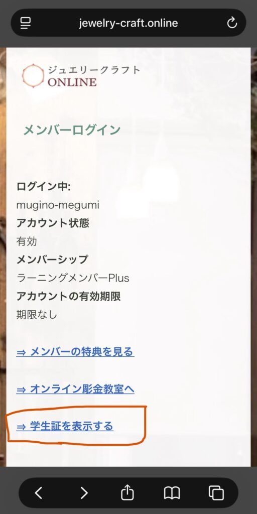 ⇒ 学生証を表示する(有料メンバー特典)