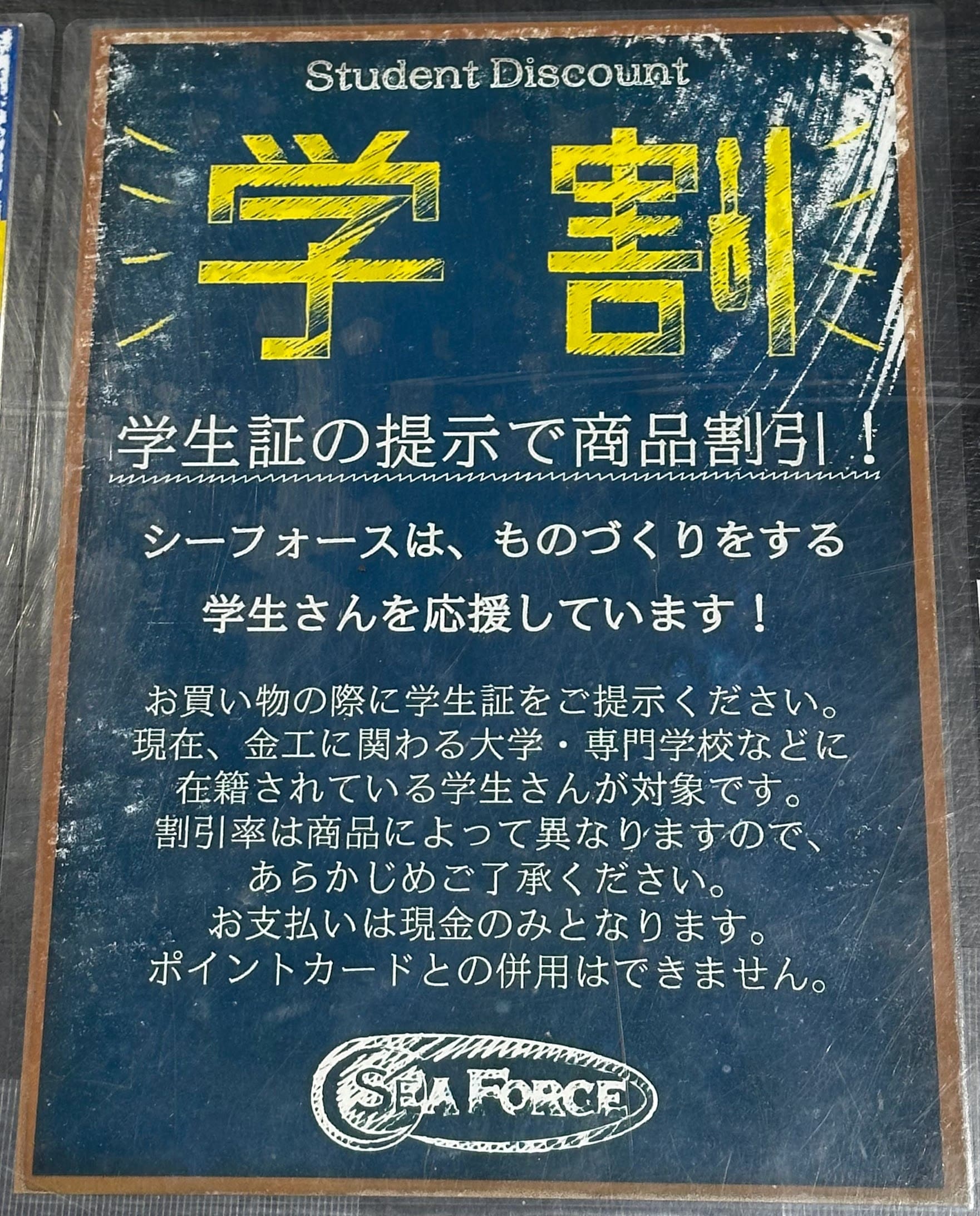 このたび、シーフォース東京店・大阪店にて、学割がご利用いただけるようになりました!